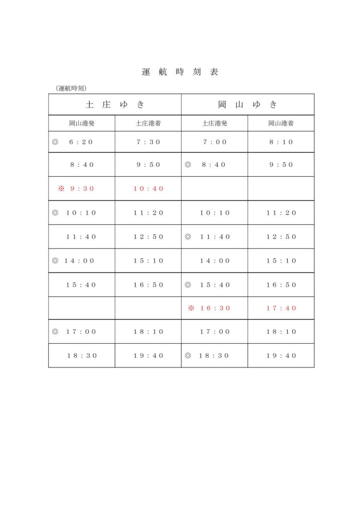 ■臨時便:①新岡山9:30発→土庄10:40着